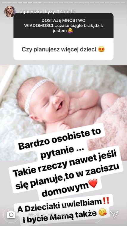 Agnieszka hyży jest w ciąży i spodziewa się narodzin swojego pierwszego dziecka z grzegorzem hyżym.